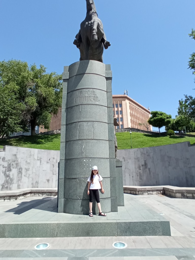 Բարև Ձեզ։ Այսօր ես կպատմեմ մեր երեկվա ճամփորդության մասին։ Մենք երեկ՝ հունիսի 2-ին ժամը 11:00-ին գնացել ենք Սիրահարների այգի, Կասկադ և Օպերա։ Մենք այնտեղ տեսանք Մարշալ Բաղրամյանի ձիարձանը․ այն տեղադրված է Մ․ Բաղրամյան փողոցի վրա։ Մենք տեսանք Կատուի արձանը, որը տեղադրված է Կասկադում, մենք տեսանք Ա․Թամանյանի արձանը, որը տեղադրված է Կասկադում։ Հետո մենք տեսանք Վ․Սարոյանի արձանը, որը տեղադրված է Երևանի կենտրոնում՝ Մաշտոցի պողոտայի և Մոսկովյան փողոցի խաչմերուկում։ Հետո մենք տեսանք Հ․Թումանյանի արձանը, որը տեղադրված է Օպերայում, հետո տեսանք Ֆ․Մկրտչյանի արձանը, որը տեղադրված է Կարապի լճի մոտ։ Մենք այնտեղ շատ լավ ժամանակ անցկացրեցինք։ Մենք վերադարձանք 1:40։ Ինձ այտեղ շատ դուր եկավ: