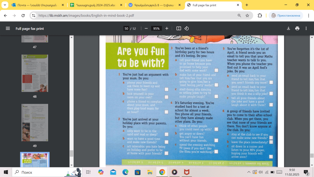 Choose from the following prepositions at, by, for, from, in, on, with and complete the sentences.